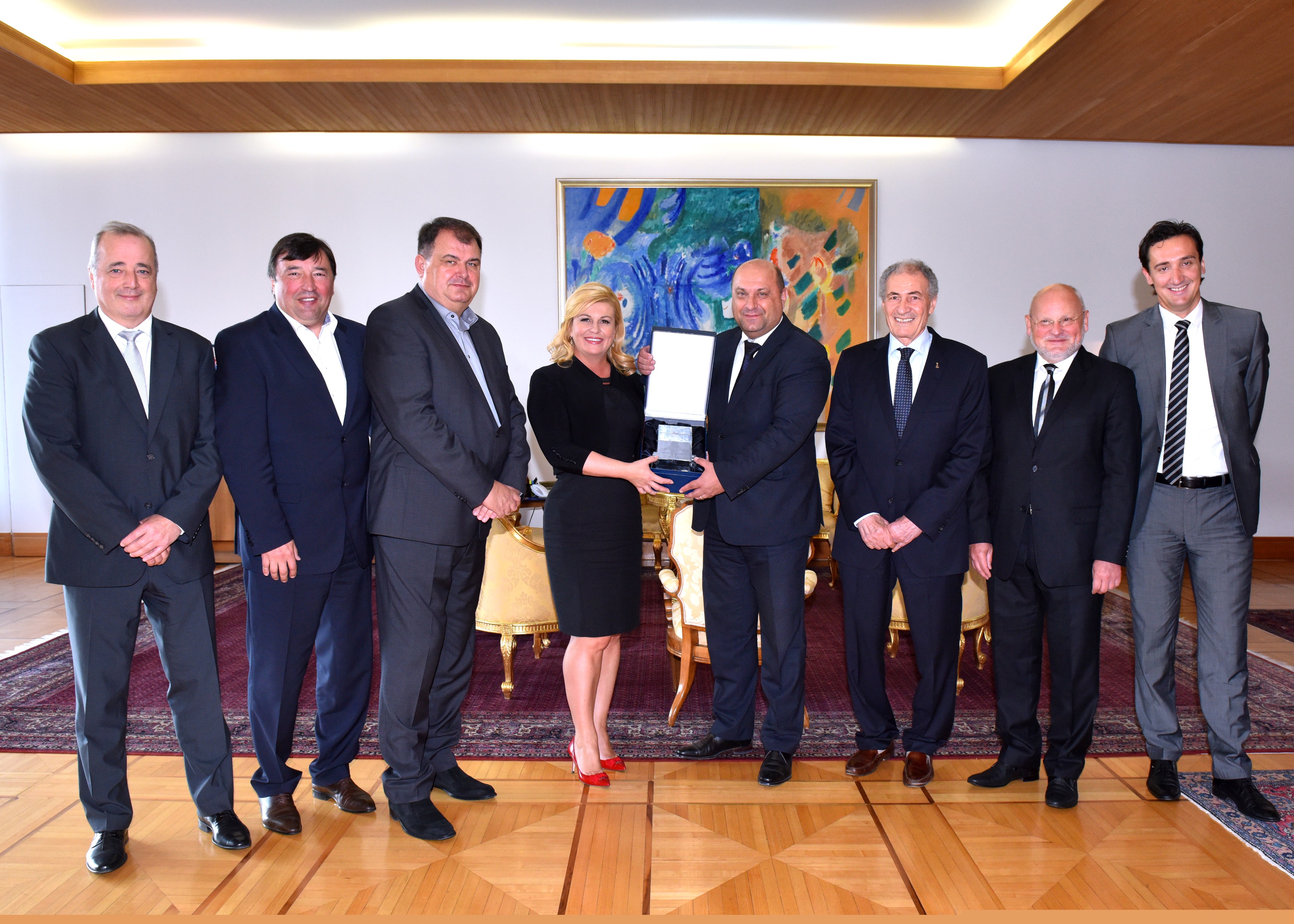 Čelne ljude Hrvatskog rukometnog saveza i predsjednika Međunarodne rukometne federacije dr. Moustafu u popodnevnim satima primit će predsjednica Republike Hrvatske Kolinda Grabar-Kitarović kojoj je također predsjednik HRS-a g. Tomislav Grahovac uručio prigodni poklon.