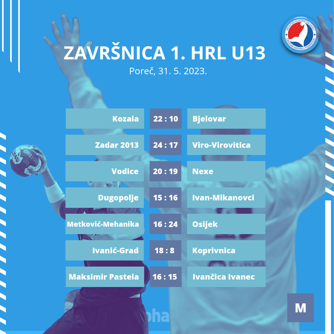 Slijedi pregled svih rezultata utakmica odigranih drugog dana Završnice 1. HRL U13 (M):