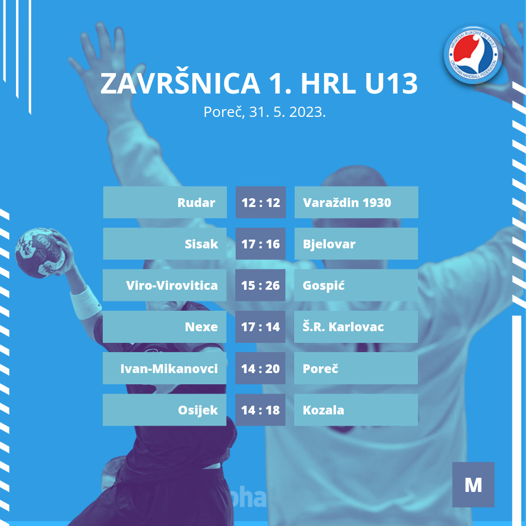 Slijedi pregled svih rezultata utakmica odigranih drugog dana Završnice 1. HRL U13 (M):