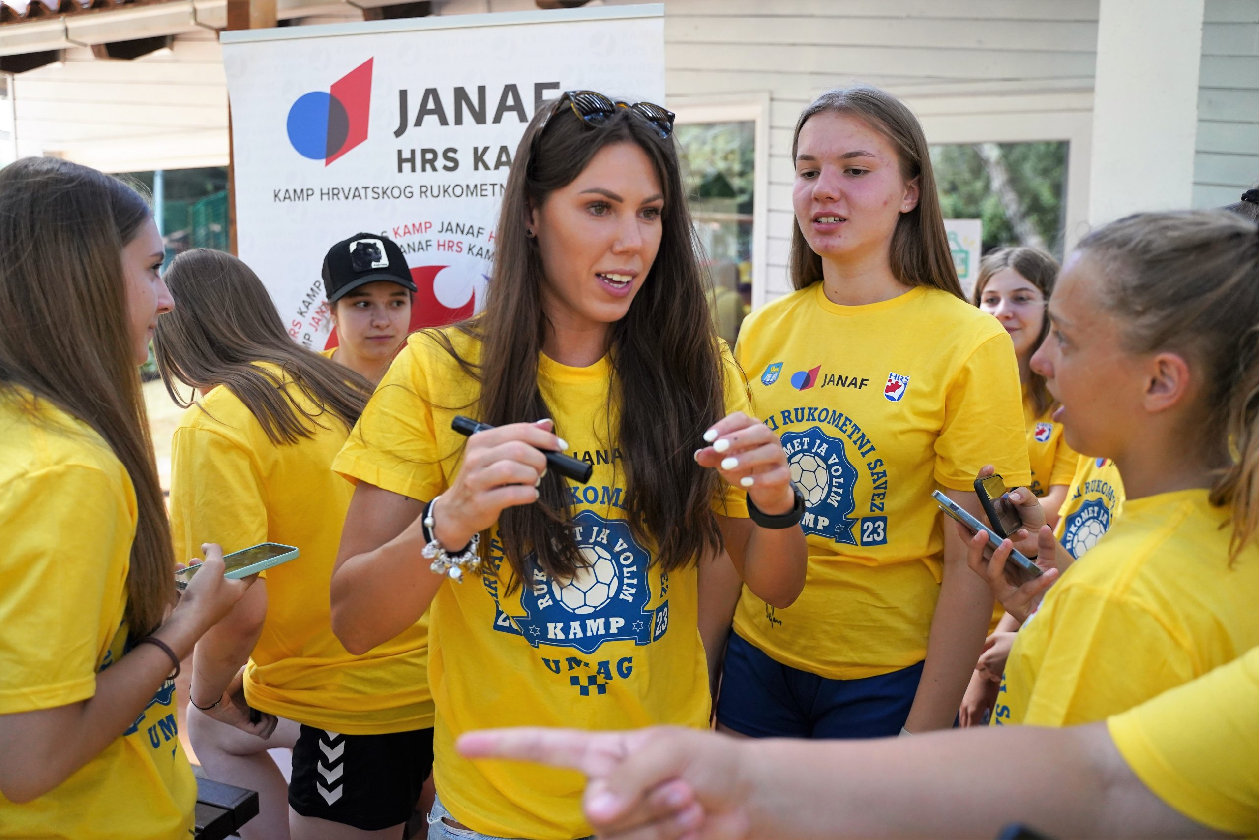 Sjajna atmosfera vlada u Janaf Kampu HRS-a, a drugog ju je dana dodatno uveličala hrvatska reprezentativka Dejana Milosavljević svojim dolaskom u Umag. Dvjestotinjak mladih rukometašica pozorno je pratilo svaku riječ uspješne hrvatske rukometašice i upijalo svaki savjet koji im je dala.