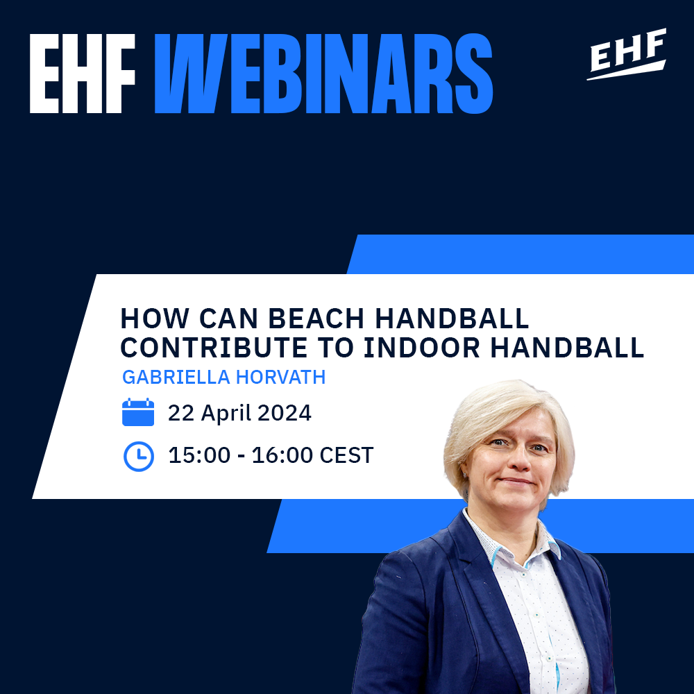 Na vrhuncu rukometne sezone, Europska rukometna federacija (EHF) nastavlja s brojnim aktivnostima koje uključuju i dobro poznate Webinare. Sljedeći na redu je Webinar koji će na temu “Kako rukomet na pijesku može doprinijeti dvoranskom rukometu / How can Beach Handball contribute to Indoor Handball“, održati Gabriella Horvath.