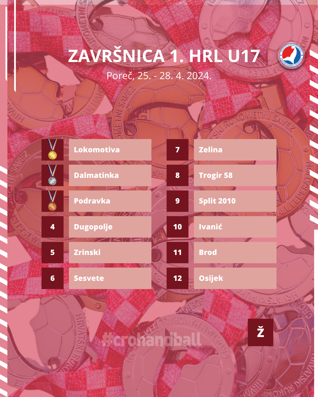 Nakon četiri dana i 40 odigranih utakmica, svom je kraju došla i prva ovogodišnja Završnica. Dobili smo nove prvakinje države u kategoriji do 17 godina (djevojke rođene 2006. i mlađe), a to su rukometašice Lokomotive koje su u finalu bile bolje od Dalmatinke. Treće mjesto pripalo je Podravci koja je pobijedila Dugopolje. Najbolja igračica turnira je Ivana Fratnik (RK Lokomotiva Zagreb), najbolja strijelkinja Sara Golub (ŽRK Zrinski), a najbolja obrambena igračica je Tara Đelekovčan (RK Podravka).