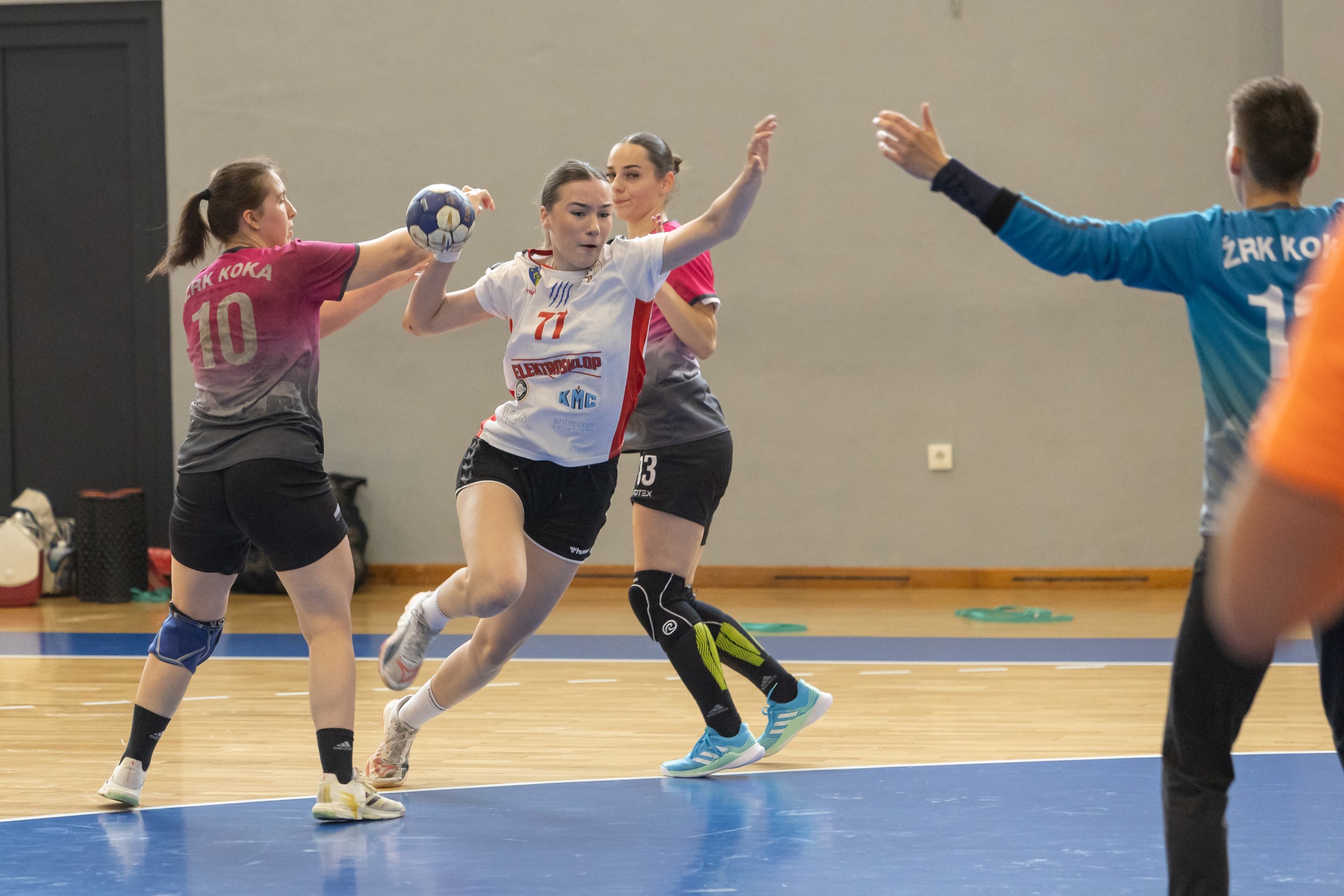 Koka je prema očekivanju iskoristila sve slabosti Dugog sela ’55 i stigla do pobjede koja je ostavlja u igri za 3. mjesto. Već po broju pogodaka u prvom dijelu bilo je jasno da obrane kao da nisu postojale. Dvadesetak minuta domaćin je držao ravnotežu, ili imao zaostatak od dva do tri pogotka, a onda su gošće uspjele povezati prvu veću seriju od pet pogodaka u nizu i s lakoćom na kraju prvog poluvremena dostići golemih sedam pogodaka viška (16:23).