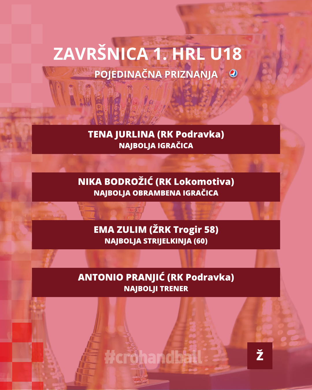 Iza nas su četiri dana fantastičnog rukometa što znači da je gotova prva ovosezonska Završnica. Čast da otvore ovu sezonu rukometnih uzbuđenja u Poreču dobile su već tradicionalno najstarije rukometašice, odnosno djevojke do 18 godina. Ove godine titulu najboljih u državi osvojile su rukometašice Podravke koje su u finalu bile bolje od Zameta. Treće mjesto pripalo je zagrebačkoj Lokomotivi koja je u borbi za broncu svladala Koku. Naravno, nakon velikog finala, izabrane su i najbolje pojedinke ove Završnice. Za najbolju igračicu izabrana je Tena Jurlina iz Podravke, najbolja obrambena igračica je Nika Bodrožić iz Lokomotive, a sa 60 postignutih pogodaka, najbolja strijelkinja je igračica Trogira 58 Ema Zulim. Titulu najboljeg trenera ponio je Antonio Pranjić iz Podravke.