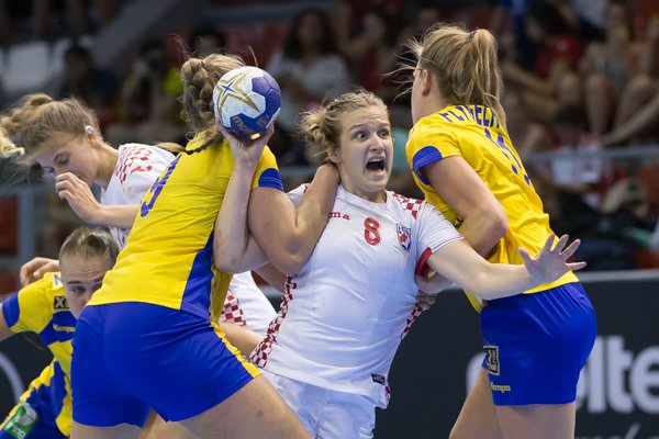 Hrvatska otvara pogocima Leonarde Kapetanović i Lucije Zebe za vodstvo 2:1. No, serija tehničkih grešaka omogućila je Šveđankama da naprave seriju od čak pet uzastopnih pogodaka i povedu sa 6:2. Izbornik Ivan Jerković morao je pozvati minutu odmora jer njegove igračice nisu uspijevale naći put do švedskog gola. Nakon time-outa Dora Lukić konačno zabija gol za Hrvatsku. I tu se počelo otvarati. Iako su igrale s igračem manje Hrvatice se uspijevale malo po malo sustizati zaostatak. Ivona Mrđen u 23. minuti donosi izjednačenje na 9:9, ali Clara Lerby sa svoja dva brza pogotka vraća Švedsku na +2 (11:9). No, posljednjih sedam minuta proteklo je u znaku hrvatskih rukometašica. Lucija Bešen obranila je nekoliko lopti, a obrana ispred je dobila gustoću koju je prikazivala u prve dvije utakmice na Prvenstvu. Katarina Mrazović donosi novo izjednačenje dvije minute prije kraja poluvremena, a Zeba 15 sekundi prije kraja pogađa za vodstvo. U tom posljednjem napadu su izborile i dva isključenja Šveđanki i time si stvorile dobru poziciju za nastavak susreta.