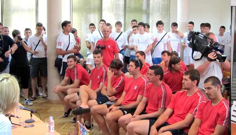 Hrvatska rukometna reprezentacija na čelu sa izbornikom Slavkom Golužom posjetila je središnji rukometni Kamp HRS-a u Zadru. Reprezentativci Hrvatske koji se pripremaju za sjorašnje Olimpijske igre u sastavu Balić, Duvnjak, Vori, Štrlek, Čupić, Horvat, Lacković, Gojun, Bičanić, Ninčević i ostali fotografirali su se sa sudionicima Ghetaldus Kampa HRS-a.  Nakon toga Domagoj Duvnjak, Ivan Čupić i Manuel Štrlek ponovno su posjetili Kamp HRS-a gdje su se družili sa  mlađim kadetkinjama (1996. godište), djevojčicama (1998. godište), mlađim djevojčicama (2000. godište) i onim najmlađima koji su tek počeli igrati mini-rukomet (2002. godište) te odgovarali na pitanja sudionica kampa.